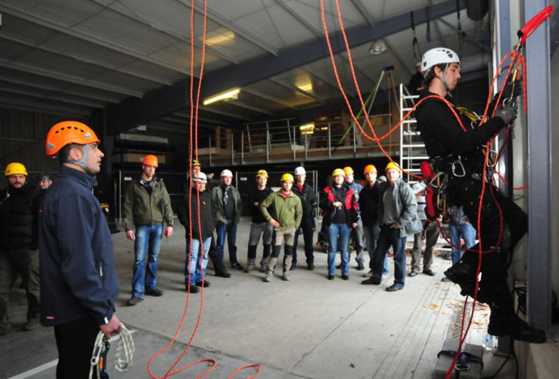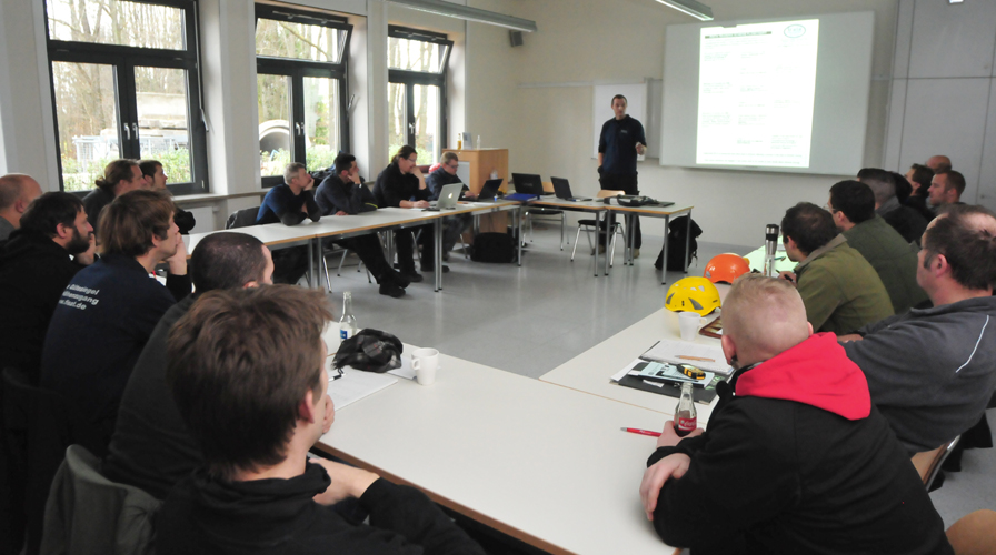 Neben Erfahrungen zum „QS-Portal“ des FISAT wurden auch Erfahrungen zum ersten Jahr mit der TRBS 2121-3 „Gefährdungen von Personen durch Absturz – Bereitstellung und Benutzung von Zugangs- und Positionierungsverfahren unter Zuhilfenahme von Seilen“ in den Räumen der Bauakademie Feuchtwangen ausgetauscht. Infolge des Inkrafttretens der TRBS 2121-3 entstand, so Knut Foppe, eine verstärkte Nachfrage nach Ausbildung und Zertifizierung von Höhenarbeitern. Die konkreten Ausbildungszahlen für 2010 widerspiegeln dies überdeutlich: 185 Prüfungen mit 1100 Teilnehmern bzw. 119 WUs mit 595 Teilnehmern fanden bis zum Stichtag 13.11.2010 statt. Darüber hinaus wurden bereits 67 weitere Termine bis 31.12.2010 angemeldet.