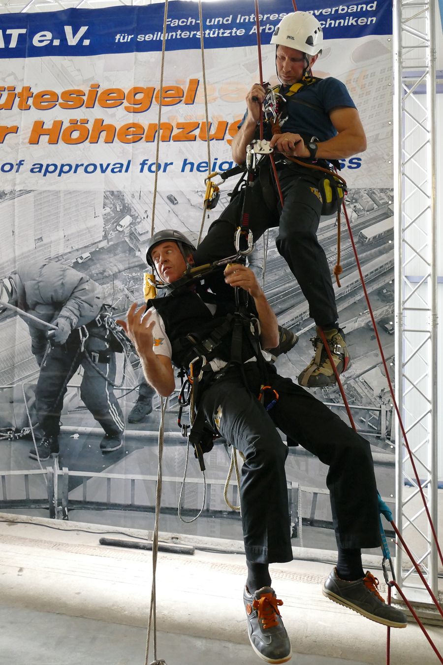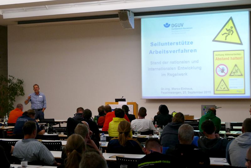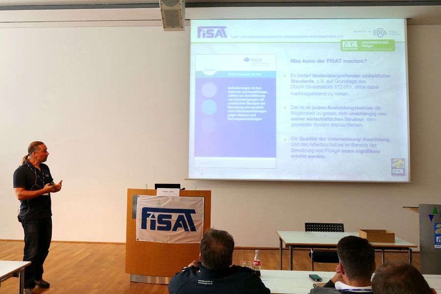 Zentrales Thema beim 8. Technikseminar war die PSAgA; in Vorträgen erläuterten Fachleute – unter anderem Vertreter der BG Bau, der BG RCI und der SVLFG – die folgenden Aspekte: Sicherheit, Rettung und spezifische Erste Hilfe, PSAgA in Abgrenzung zu SZP und SKT, Normen und Art der Anwendung von PSAgA, Stand der Dinge im Regelwerk sowie Versicherungsschutz. Des Weiteren präsentierte eine Arbeitsgruppe des FISAT ihre Ergebnisse in Bezug auf die Entwicklung eines Qualitätssiegels für Unterweisung in die Nutzung von PSAgA.