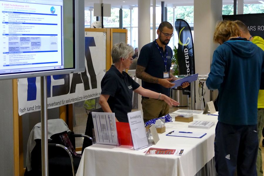 Der Ausbilderworkshop fand dieses Jahr zum ersten Mal bereits am Donnerstagnachmittag statt. Am 24. September 2015 trafen sich also zahlreiche Ausbilder und nutzen die Gelegenheit, sich direkt bei den FISAT-Zertifizieren zu informieren: In entspannter Arbeitsatmosphäre wurden Fehler und Unsicherheiten, die bei Prüfungen häufig auftreten, gezeigt, diskutiert und Lösungsvorschläge angeboten.