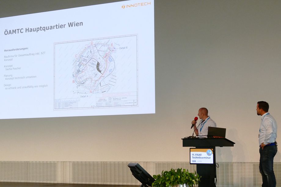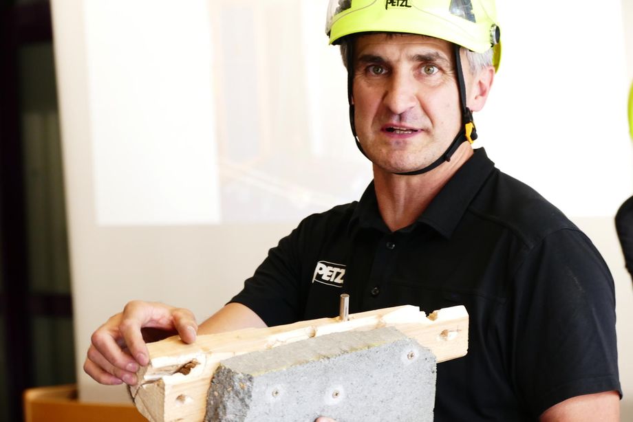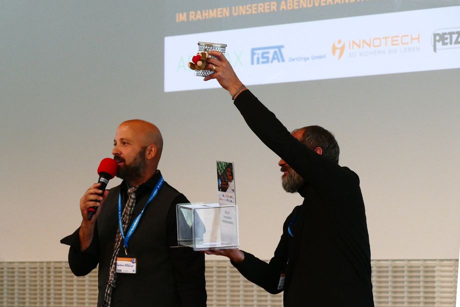 Peter Radner von der INNOTECH Arbeitsschutz GmbH sprach über „Schienensysteme für die Seilzugangstechnik - Grundlagen, Möglichkeiten und Chancen“. An drei Beispielen wurden wesentliche Punkte für die Nutzung von Schienensystemen für planmäßig belastete Seile erläutert. Er wurde bei seinem Vortrag für die Präsentation und Besprechung eines Praxisbeispiels von Sacha Poscher aus Wien unterstützt.