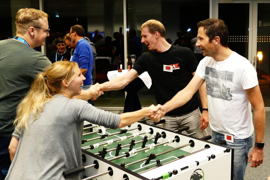 Bei uns in Dresden stand jedenfalls die Fußballwelt Kopf: Das heldenhafte Team Finnland gewann vor Irland und Team Kamerun siegte gegen Kolumbien beim Spiel um den dritten Platz. Das ruft ja eigentlich nach einer Revanche, oder!? Glückwunsch an die siegreichen Teams. Danke an alle fairen Mitspielerinnen und Mitspieler. Dabeisein war einfach alles! Ein großer Dank von uns an das Team von Ullrich-Sport: Die Damen und Herren haben uns sowohl bei der Produktion der personalisierten Tischkicker unterstützt, als auch die professionelle Turnierleitung und -durchführung am Abend selbst in die Hand genommen.