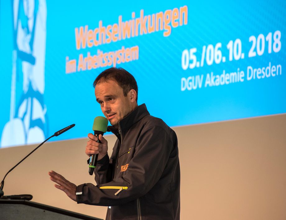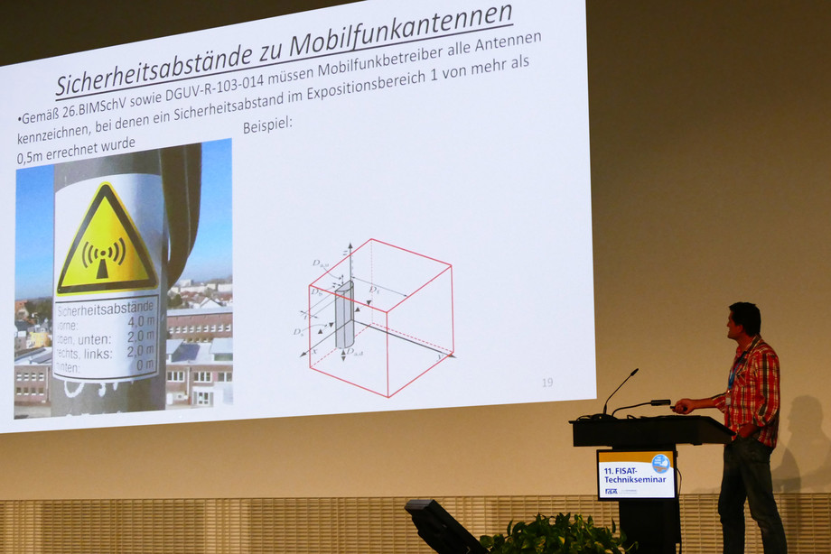 Bernd Schmitz ging in seinem Vortrag „Elektromagnetische Gefährdungen an hochgelegenen Arbeitsplätzen – über eine unsichtbare Gefahr” auf die spezifischen Herausforderungen bei der Arbeit im Umfeld von Mobilfunkanlagen ein.