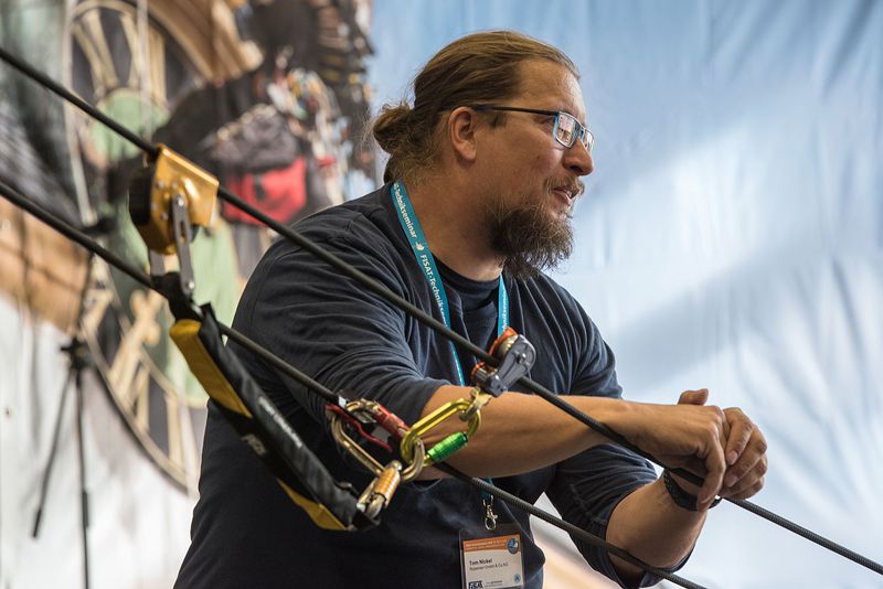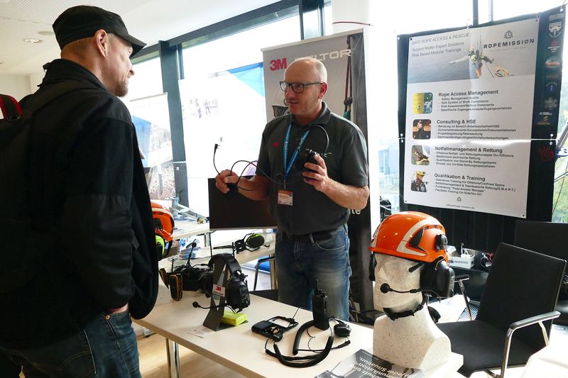 Den vierten Vortrag des Tages bestritten gemeinschaftlich Markus Grabowski, 3M Deutschland GmbH, und Knut Foppe, Ropemission zum Thema „Kommunikation im Seil“. Wieviel Kommunikation brauchen wir wann und welche Einschränkungen der Kommunikation begegnen Höhenarbeitern im Arbeitsalltag? Wie kann eindeutige Kommunikation innerhalb des Teams auch unter Stress aufrechterhalten werden? Sowohl effektive Kommunikation, als auch Situational Awareness müssen als Sicherheitsfaktoren begriffen und entsprechend berücksichtigt werden. Das Dozentenduo beleuchtet nicht nur den Arbeitsalltag, sondern zeigt sowohl planerische als auch technische Lösungsmöglichkeiten auf.