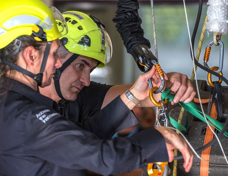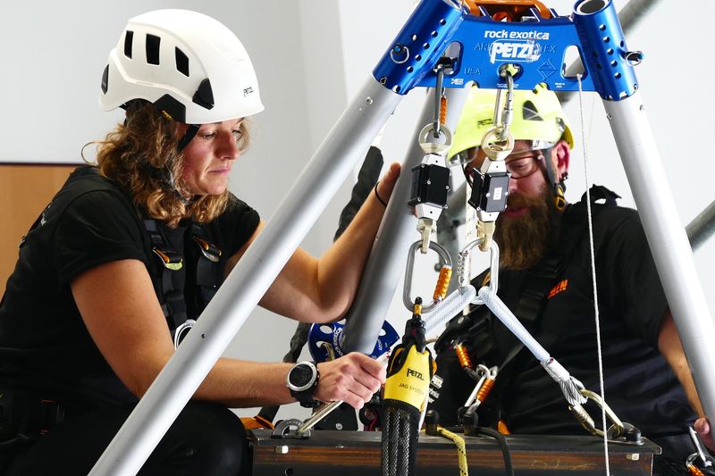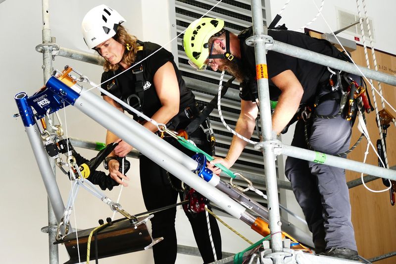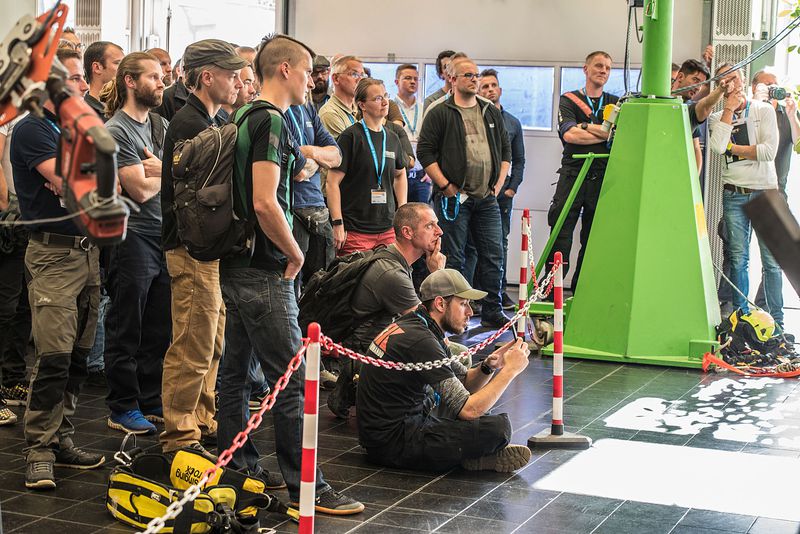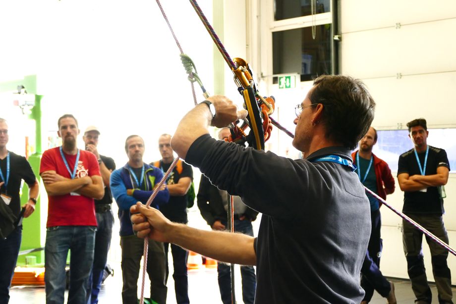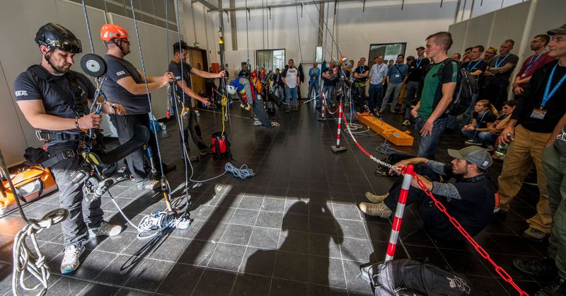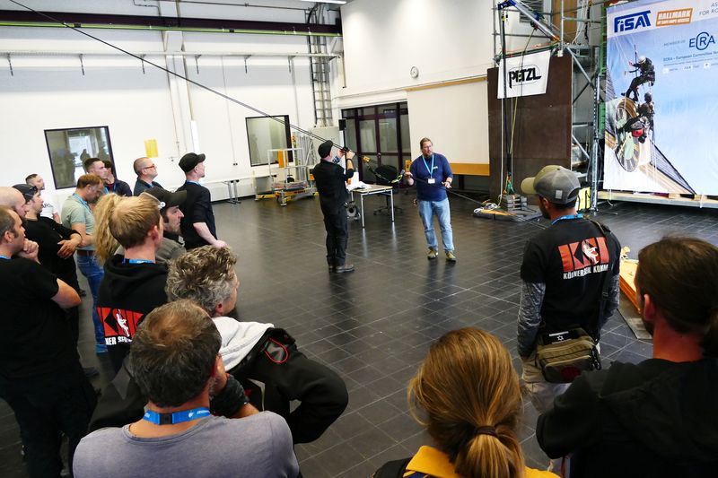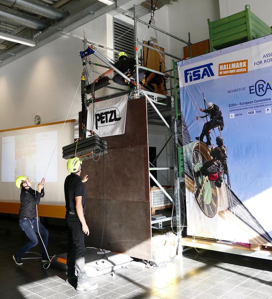 2.) „Kantenbelastung“ – PETZL ProTeam: Aufbauend auf dem 2017er FISAT-Technikseminar-Workshop demonstrierte das PETZL ProTeam unter Leitung von Training Manager Marek Proba dieses mal auftretende Kräfte im System und an der Struktur, insbesondere bei der Seilführung über Kanten. Im Rahmen des Workshops wurde sowohl eine Präsentation gezeigt sowie dynamische Versuche an Kanten mit unterschiedlichen Eigenschaften vor Ort durchgeführt. Die Ergebnisse wurden live dokumentiert, ausgewertet und den Teilnehmern des FISAT-Technikseminars im Downloadbereich zur Verfügung gestellt.