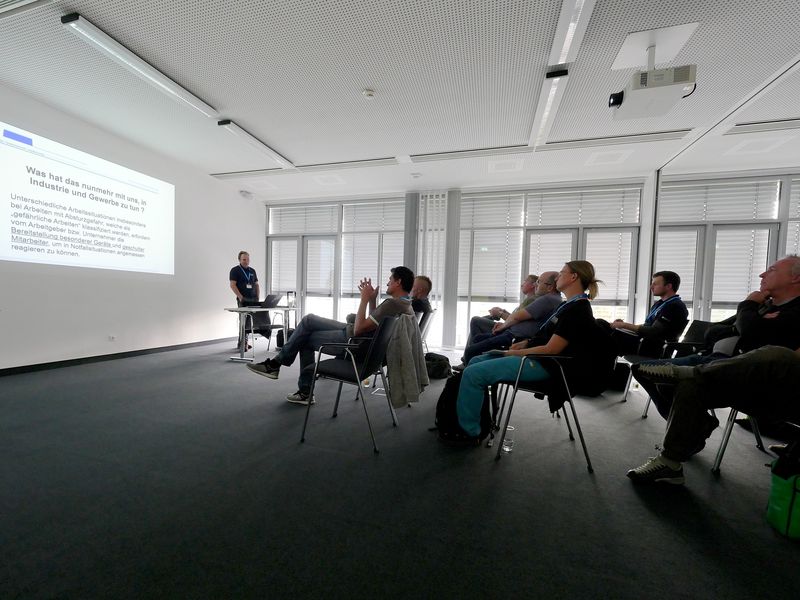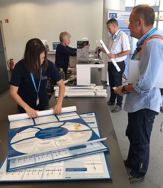 Zeitgleich liefen in den Workshop-Räumen offene Gesprächs- und Diskussionsrunden: Roland Klampfl, Referatsleiter Sicherheit und Ausbildung, und Peter Biegel, FISAT ZertOrga GmbH, standen für Fragen und Informationen rund um die Ausbildung, Prüfung und die Zertifizierung von Ausbildungsunternehmen im Bereich PSA gA zur Verfügung.