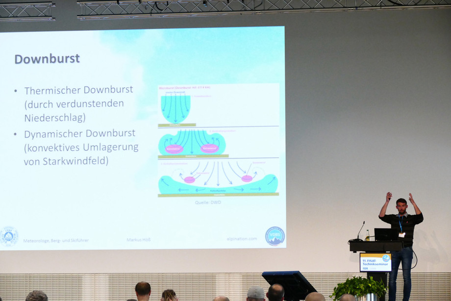 Diplom-Meteorologe Markus Höß gab im Rahmen seiner Präsentation detaillierte Einblicke in wetter- und witterungsbedingte Gefahren für die Seilzugangstechnik, wie beispielsweise Gewitter, Vereisung, Windchill u.a. Neben einigen grundlegenden Hinweisen zur Entstehung von überregionalen und lokalen Wettergeschehnissen, sprach er auch ganz praxisnah einige Empfehlungen zu nützlichen Apps und Internetportalen zum Thema Wetterprognose aus.